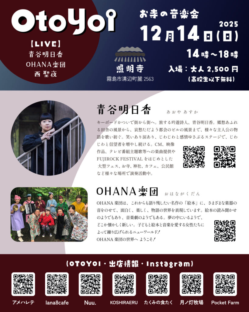 お寺の本堂に響く、青谷さんの歌声が楽しみです。